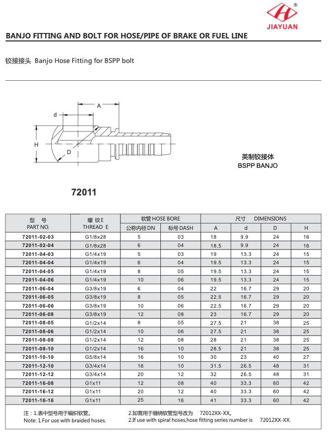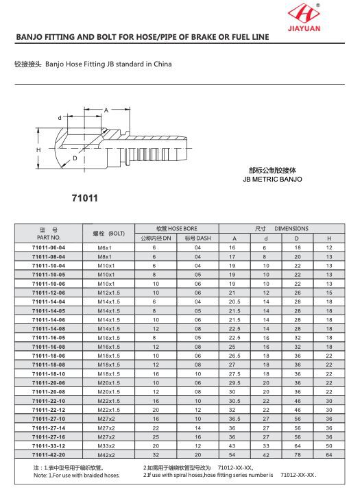 Jiayuan 유압은 SAE, JIC 및 ISO를 포함하여 산업 표준, 파커 및 그레인저 밴조 피팅 카탈로그에 부합하는 광범위한 밴조 볼트와 바디를 제공합니다. 밴조 피팅은 아연 도금 강철, 스테인레스 스틸, 황동 및 기타 재료로 만들 수 있습니다. 우리가 만드는 모든 밴조 볼트와 밴조에 대해, 우리는 스레드를 검사하고, 치수를 확인하고, 신중하고 전문적으로 버를 제거하여 고품질을 보장합니다.